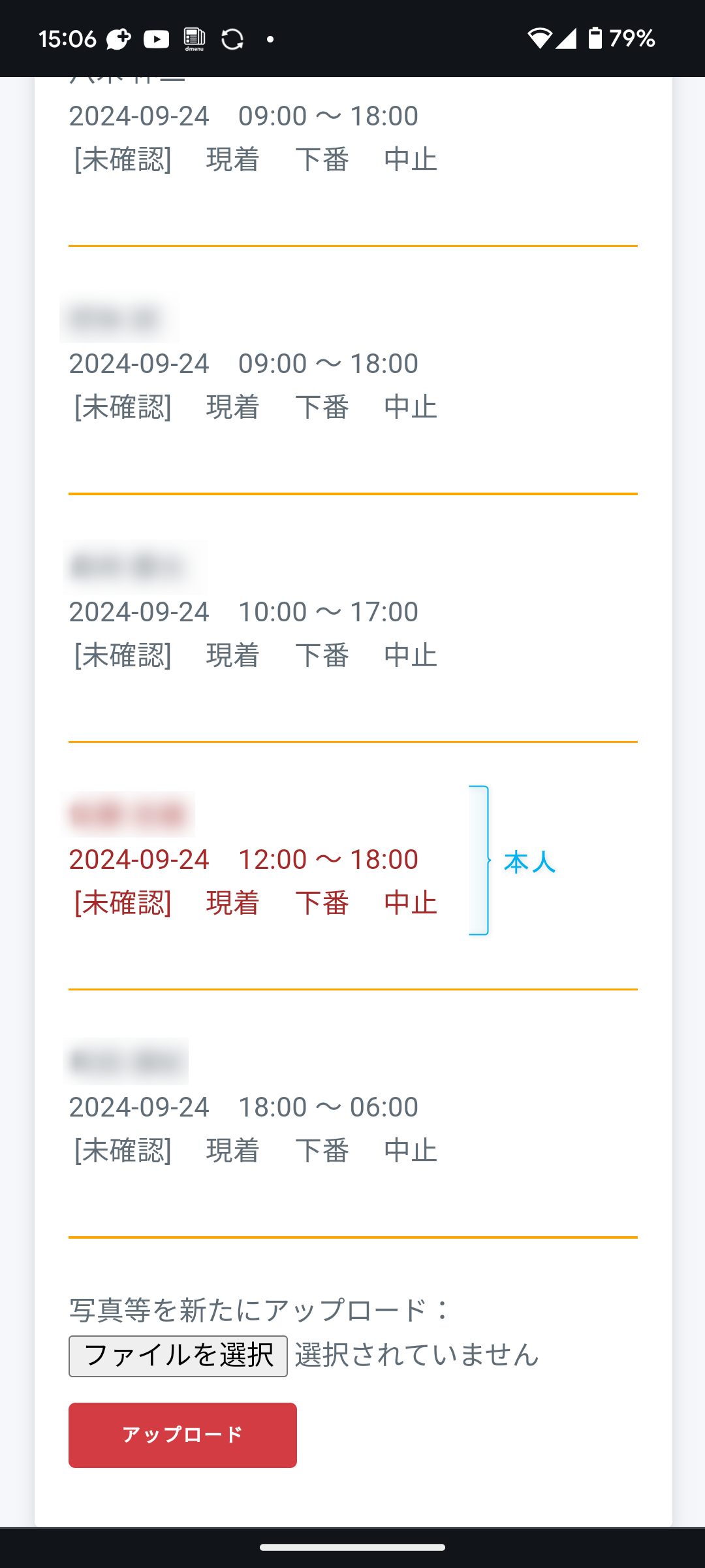 - その下は、上番の日付と予定勤務時間です。
