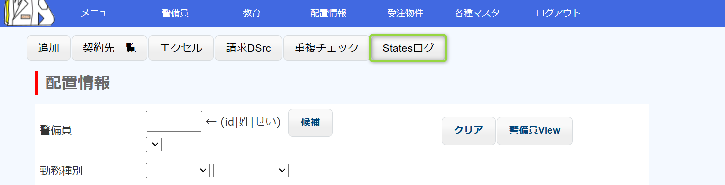 警備員が操作する上下番報告システムではなく、業務管理を行う職員が使用する警備業管理システムにおいて、勤務の「状態」が表示されるのは、配置情報一覧と配置情報Viewです。