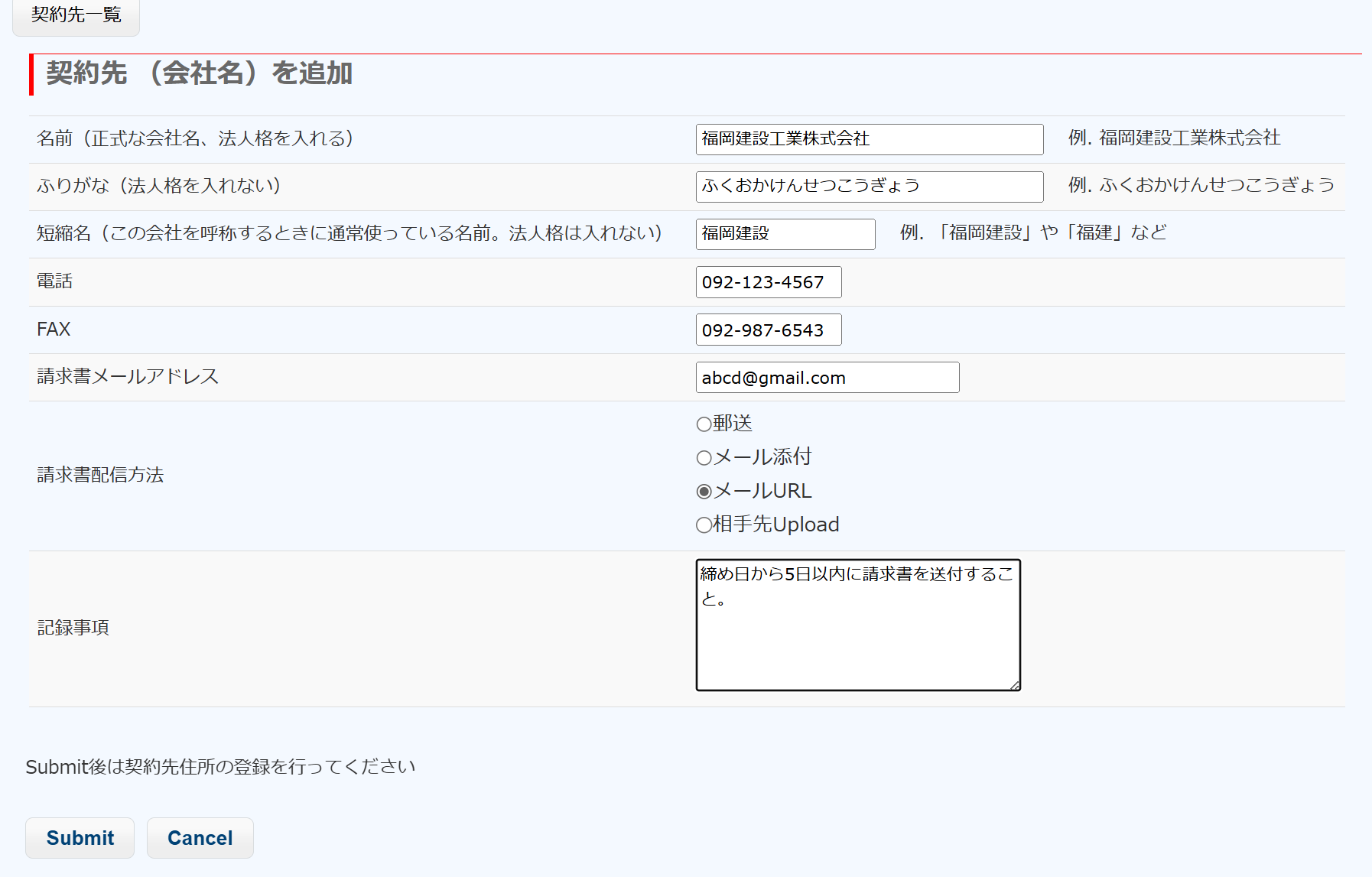 契約先を登録する