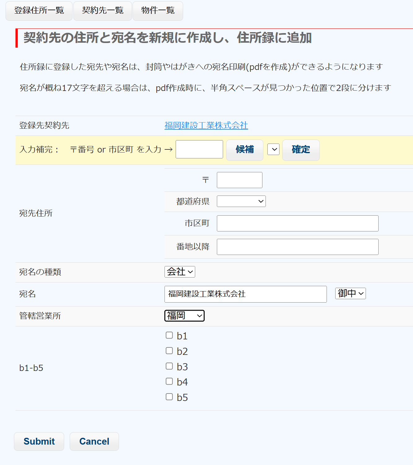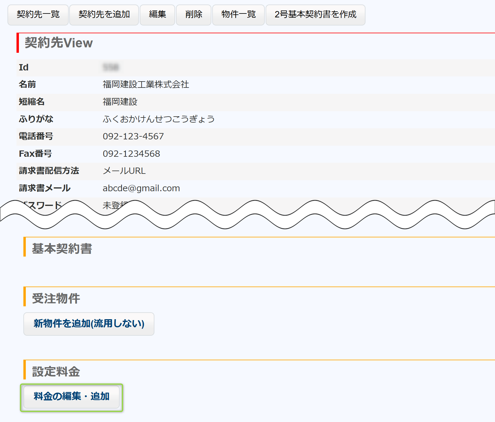 [グローバルナビ:受注物件] > 契約先一覧 > 新契約先追加