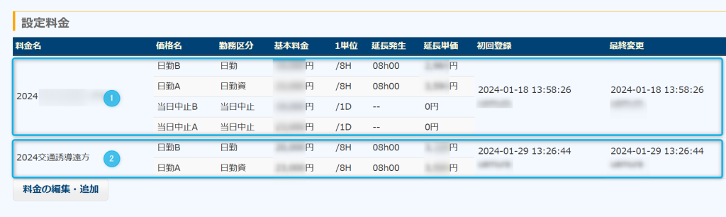 尚、古い料金を編集して料金を書き換えたとしても、すでに警備料金の割り当てが終わっている請求データには影響しません。