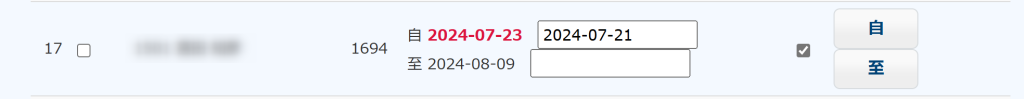 - 自 2024-07-22 などの日付は、配置データからゲットした開始日で、至 2024--8-09 などの日付は終了日です。