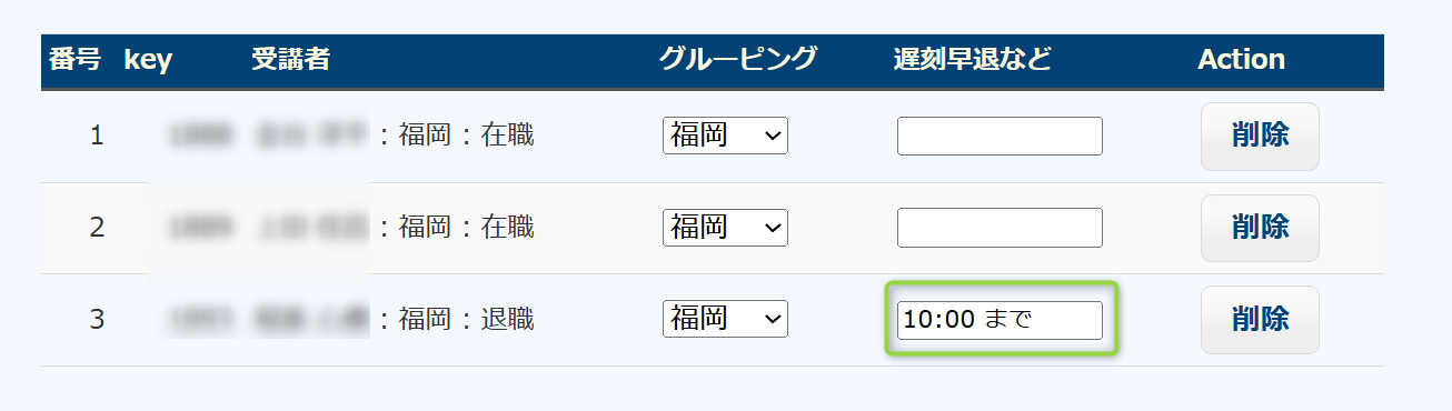 もともと2名であった受講者の表に3名が追加され、総員5名となります。