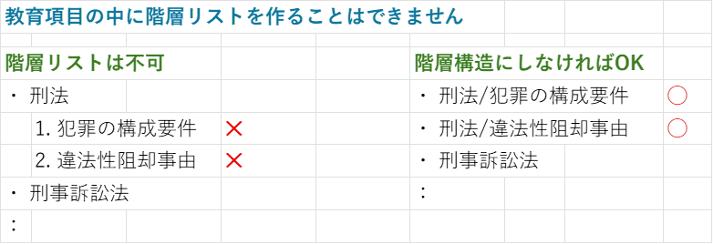 - 教育項目はリストの階層には対応していません。