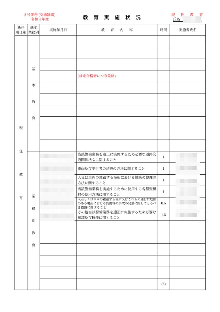 資格の取得数が5を超える、或いは従事する警備業務の内容が10を超えると、必要なだけ補助用紙が使われます。教育実施状況が作成されていれば、PDFの2ページ目以降(補助用紙が使われていればその後ろ)に古い順に出力されます。