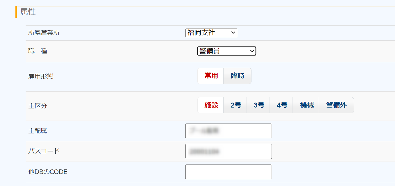 | 主配属 | 作者のところでは、施設の場合は配属される施設名を、交通の場合は「交通」としています |