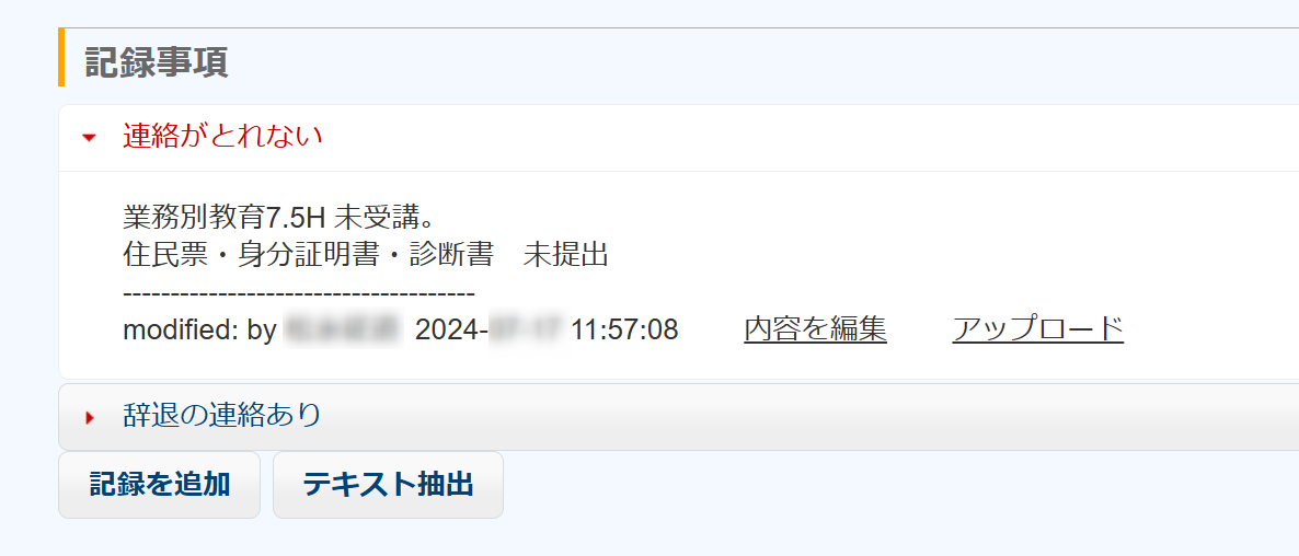 次の画像は、ある人物が業務別教育に出席しなかったときの状況を記録したものです。